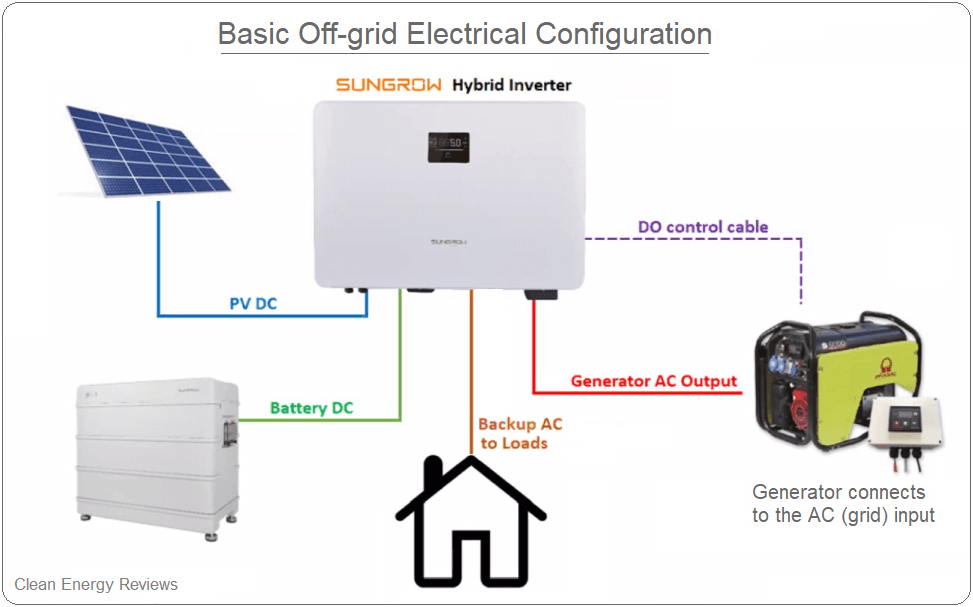 Generally, most hybrid inverters are not designed or recommended for off-grid operation due to the high power demand requirements and inability to manage a backup generator when needed. However, Sungrow is one of a growing number of hybrid inverter manufacturers that are moving into the off-grid space, integrating smart generator controls and designing more powerful hybrid inverters that can operate in permanent off-grid mode. However, it is important to note that hybrid inverters, like any off-grid system, will only work successfully when it is designed correctly to suit the specific load requirements. Learn more about designing off-grid and hybrid systems.